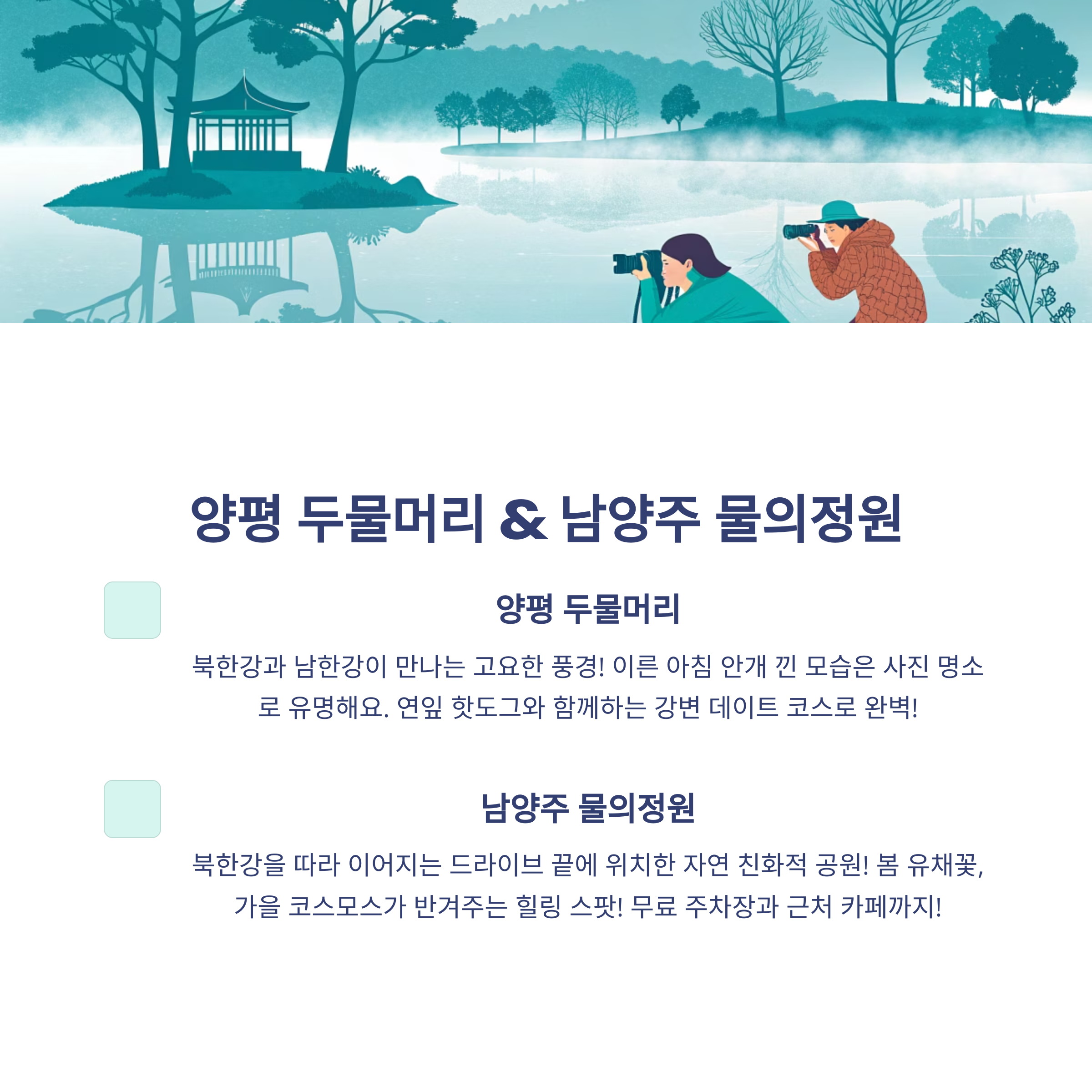 지역별로 소개해드릴게요. 가족, 연인, 혼자만의 힐링까지