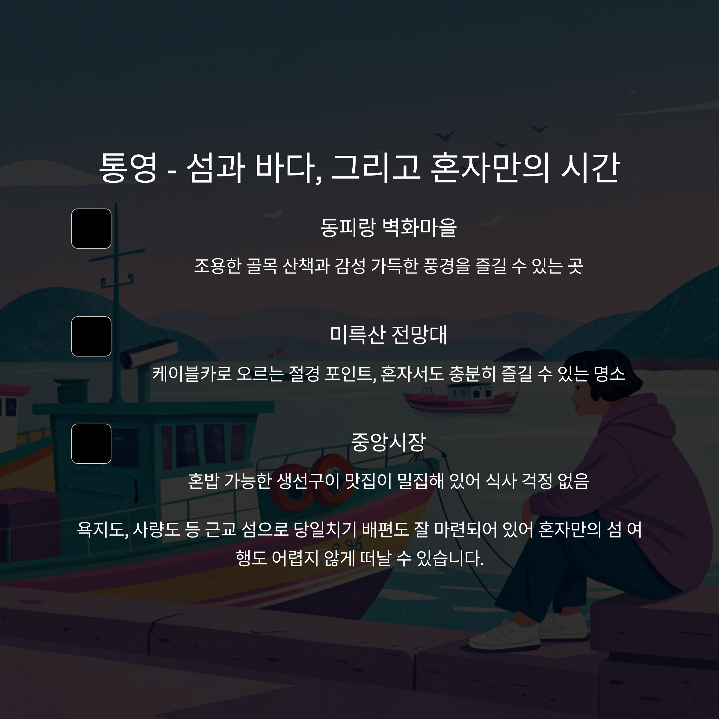 통영 – 섬과 바다, 그리고 혼자만의 시간