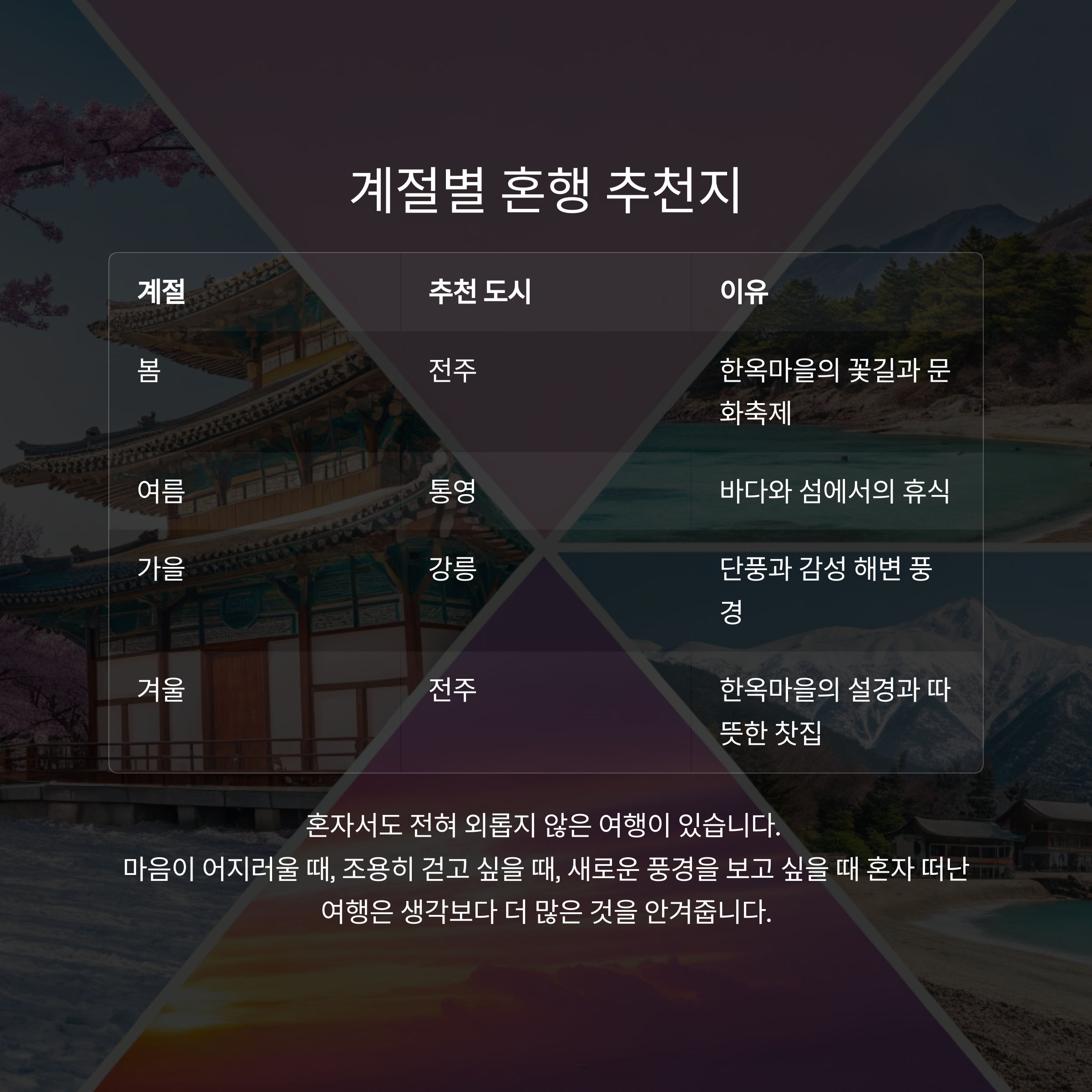 혼자만의 시간이 간절해질 때, 조용히 떠날 수 있는 국내 여행지는 어디가 있을까요?